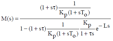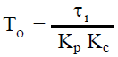 (7)Se utiliza un controlador primario PI en donde el tiempo de integración se iguala a la constante de tiempo del sistema de primer orden P(s) = Kp e-Ls / (τs + 1), es decir τi=τ , y la constante de tiempo de lazo cerrado To viene dada por: