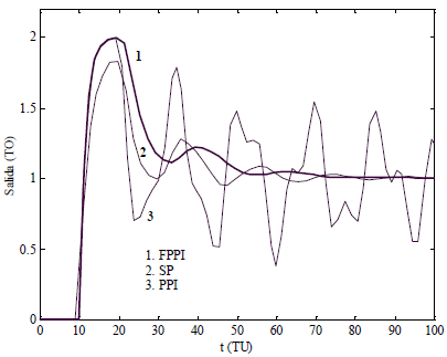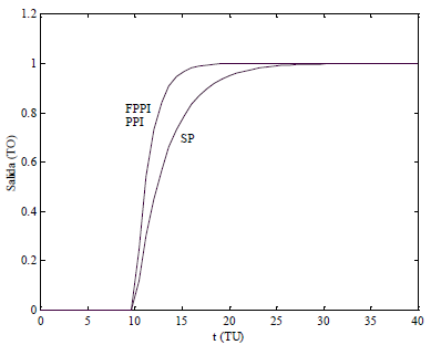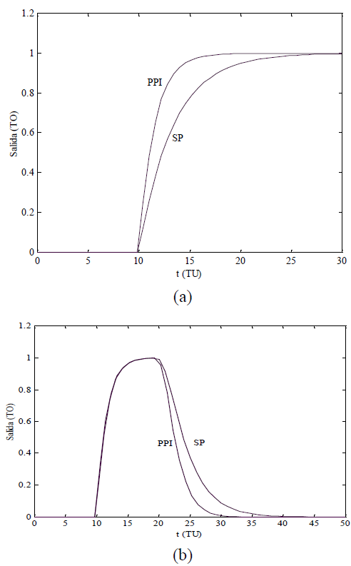 (12)Los parámetros del controlador para ambas estrategias son: Kc=1, τi=1,5. En la figura 10 se comparan las respuestas del SP original con el PPI ante cambios de referencia y perturbaciones