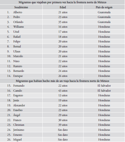Entrevistador: ¿Por qué se regresaron? Ulises: Porque como escuchaban que estaba difícil la pasada para arriba, todo eso, pues decidieron mejor regresarse. Se regresaron. Yo les dije: “Me voy a quedar aquí unos días, a ver cómo me va. Voy a averiguar bastante para ir para arriba. Pero ellos, no, decidieron regresarse” […] Ya aquí, como al escuchar que estaba dura la cosa pa arriba, decidieron mejor regresar, porque estaban asesinando a otras personas; eso se escucha (Ulises, 20 años, originario de Honduras).