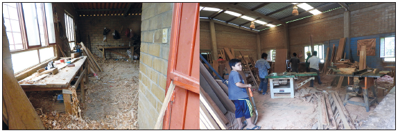 La carpintería, por su parte, es el proyecto comercial que se ha mantenido y ha aumentado tanto su capacidad productiva como la cantidad de personas trabajando en él. Actualmente cuenta con un local en el corredor comercial donde se exhiben y venden diseños. Además, se trabaja por encargo para personas que vienen de diversos lugares cercanos como Ostuacán, Xochimilco y a los mismos habitantes de la CRS.