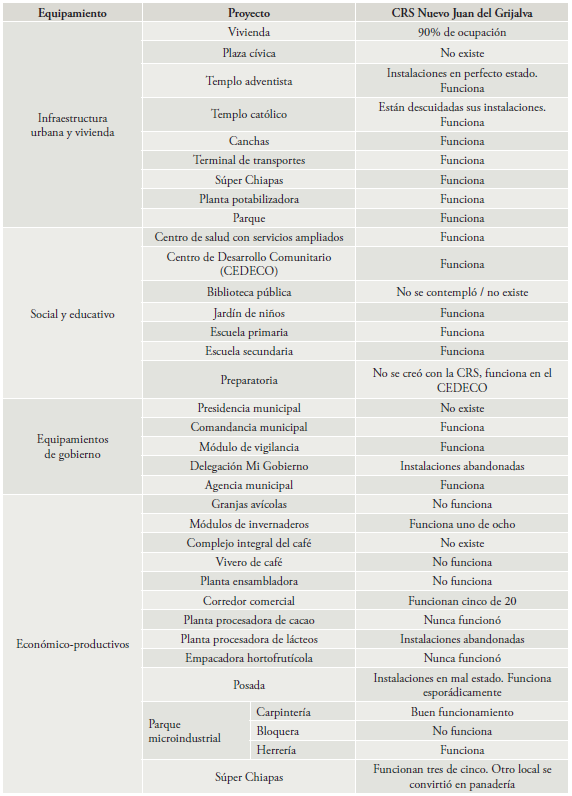 Hay niños y niñas que permanecen en sus ejidos y no tienen acceso a la educación debido a que no pueden pagar transporte para trasladarse diariamente a la CRS porque la escuela que tenían en su ejido está cerrada, así como el centro de salud. Una familia que quiere permanecer trabajando la tierra en su ejido no tiene los servicios de salud y educación que tenían antes, pues las instalaciones fueron cerradas y abandonadas. Por el contrario, en la CRS el Centro de Educación Básica Fundación Bancomer Gobierno de Chiapas (CEBECH) y el centro de salud son los equipamientos más importantes; puede afirmarse que son el corazón que da vida y la razón para que la población la habite.