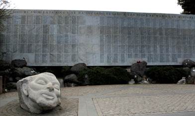 En estos términos, toda política del sujeto-víctima requiere de “espacios simbólicos de reproducción y difusión propia” (Vinyes 2011, 263), por lo que no resulta extraño que la primera gran obra de reparación simbólica construida en democracia fuese el memorial en homenaje a las 3079 víctimas de la dictadura. Ubicado en el patio 102 del Cementerio General de Santiago (imagen 1), en un alto y ancho muro de mármol, fueron grabados alfabéticamente los nombres de los detenidos desaparecidos reconocidos en el informe Rettig y los nombres de los ejecutados políticos. En ambos casos, acompañan a los nombres el año de muerte y/o desaparición. Sobre ellos, el nombre del expresidente Salvador Allende y, coronando en lo alto, el renombrado verso de Raúl Zurita: “Todo mi amor está aquí y se ha quedado pegado a las rocas, al mar, a las montañas”. Este primer hito de memorialización,7 demandado por las organizaciones de víctimas y gestionado por el Gobierno de Patricio Aylwin, fue modelo de inspiración para la futura agenda memorial. En estas circunstancias, compartimos la premisa que la tan anhelada memoria colectiva -sostenida por Maurice Halbwachs (1968)- evoluciona en memoria pública mediante los soportes y materialidades de los procesos de musealización y de la puesta en valor de lugares de memoria, los que en conjunto son usados como espacios de teatralización de una experiencia histórica y del establecimiento de una versión oficial sobre la dictadura, constituyendo una memoria pública que a la larga asume un carácter conservador (Joignant 2015) al focalizar casi únicamente el problema del pasado en la conmemoración de las víctimas. Michonneau (2018), para el contexto europeo, se refiere a esta relación con el pasado como “ideología dominante de la víctima” donde el valor del sufrimiento se vuelve central.