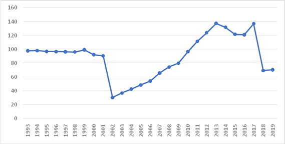 Se podría sostener “casi” con justeza que la Defensa nacional no ha sido prioridad de los gobiernos desde que se alcanzara el control civil en 1990 (Eissa 2019).15 Sin embargo, pueden observarse matices.