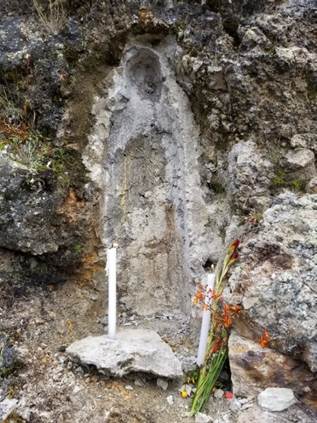 Al fragor del proceso de consulta popular que constituyó subjetividades ciudadanas, se fortalecieron hierofanías de sincretismo religioso emergentes por más de dos décadas en el acontecer de la contestación antiminera. Una expresión de ello es la imagen de la Virgen de Quimsacocha -como se observa en la figura 2- que fue colocada en un área adyacente a la laguna, sin embargo, fue retirada luego por personas promineras.