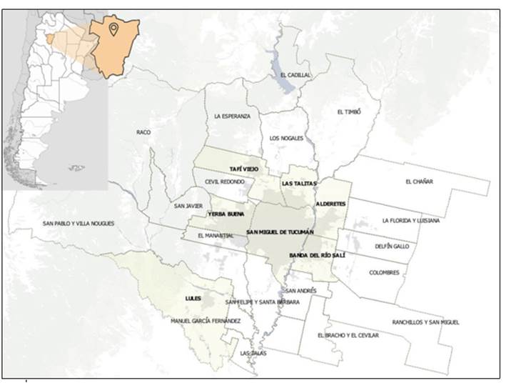 El ámbito de estudio del SiMeT se aborda en cuanto urbe más relevante del Noroeste por su complejidad funcional y por su importancia demográfica (figura 2); su población corresponde al 20 % del total de la región del Noroeste argentino. Es una ciudad intermedia que ocupa el quinto lugar entre las ciudades más pobladas de la Argentina.11