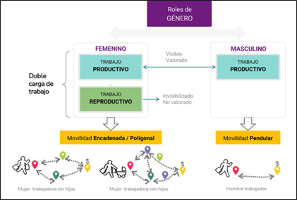 El urbanismo con perspectiva de género resulta necesario para favorecer a la equidad y dar lugar a la participación de las mujeres en los procesos de toma de decisiones. La práctica urbanística interviene, además, sobre la accesibilidad de las personas para hacer uso de los bienes y servicios que brinda la ciudad. Las posibilidades de acceso son desiguales entre mujeres y hombres, a la vez que sus necesidades y deseos son diferentes. Los patrones de movilidad son distintos y esto se debe, en parte, a los roles que cada uno asume o que se espera que asuman y que se enmarcan en una “división sexual del trabajo”. Las mujeres tienen una doble carga laboral -en la esfera productiva y en la reproductiva- que les demanda más tiempo y dinero en desplazamientos, ya que realizan viajes no solo para sí mismas, sino para cuidar a otras personas. Los trabajos de cuidado de la esfera reproductiva ocupan diversos espacios en la ciudad e implican desplazamientos, cada vez mayores, debido a las lógicas de crecimiento disperso de las ciudades. Estas tareas no encuentran apoyo de infraestructura y servicios urbanos de cuidado adecuados que alivianen la carga.