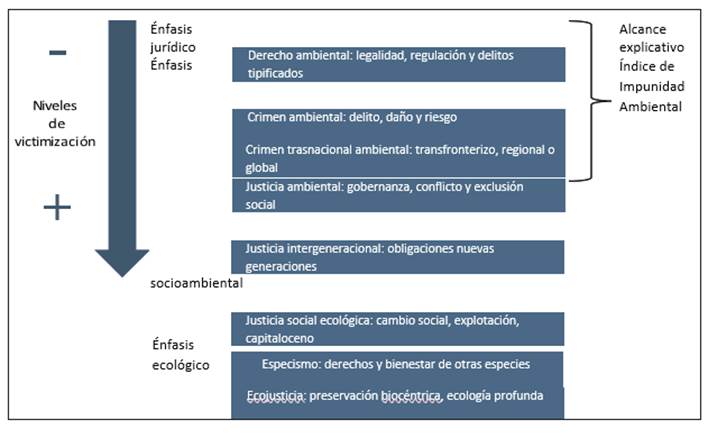 En los últimos años la criminología verde se ha enfocado en explicar problemas relacionados con la seguridad y la justicia ambiental, destacando tanto la importancia de la creación y cumplimiento de las leyes, la existencia de mecanismos de regulación y los procesos para garantizar acceso a la justicia como los efectos de la degradación ambiental que no suelen estar tipificados en las leyes e involucran acciones de redes criminales, corrupción, daño irreversible, riesgos relacionados con la extracción de recursos, conflicto socioambiental, discriminación en el acceso a recursos naturales, violencia contra activistas y defensores comunitarios, y violaciones de derechos humanos. Esto convierte a la criminología verde en un enfoque pertinente para entender la magnitud y las consecuencias sociales y ambientales de un fenómeno como la impunidad ambiental.