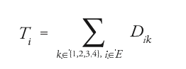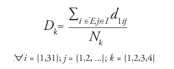 En el modelo estadístico i representa cada una de las entidades, j el conjunto de indicadores que se tomaron en cada uno de ellos y k a cada una de las cuatro dimensiones cuyo valor máximo equivale a (1).