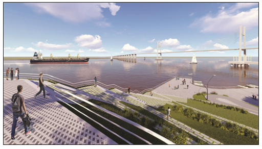 El proyecto “Mío” consta de cinco etapas que afectan a 229 000 m2 y que se desenvolverá a lo largo de 15 años. Los vecinos afirman que el proyecto terminará “enterrando” al Remanso. En los diseños del ECOM puede apreciarse un embarcadero y el traslado del Remanso a edificios colectivos. Sin embargo, en el render de la desarrolladora la costa está libre de toda forma de ocupación diferente al espacio público y las avenidas (figs. 6 y 7). Como observamos, las autoridades de ambos municipios destacan que estos desarrollos fomentarán las vías de conectividad entre las ciudades, establecerán nuevos espacios públicos en la cabecera del puente y mejorarán las condiciones de habitabilidad de los sectores populares del Remanso. En este discurso, no se hace referencia a los posibles desplazamientos y a los sitios de relocalización. Tampoco se menciona la construcción de unidades habitacionales en la zona y cuáles serán sus características.