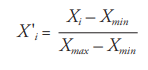 La obtención de un promedio de los recursos presupuestales, materiales y humanos incorporando la variable de tamaño de la población requirió estandarizar la escala de los datos, ya que las unidades corresponden a pesos mexicanos, número de equipos informáticos y personal adscrito a las instituciones estatales respectivamente. Fue elegida la normalización por puntajes basada en la unidad (estandarización minimax) de acuerdo con la fórmula 2, para posteriormente obtener el promedio de los recursos (Kendall y Buckland 1971, 106).