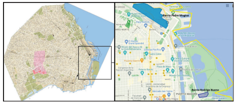 A inicios de 2023 el diario Clarín -uno de los principales medios de comunicación de Buenos Aires- publicó un artículo titulado “Revolución gourmet en las villas”1 (Clarín 2023). La publicación, presentada en un formato de historias de Instagram, consta de pequeños videos y entrevistas cortas a dueños o referentes de espacios gastronómicos, muchos de ellos migrantes de países latinoamericanos, en dos barrios populares tradicionalmente relegados y estigmatizados: el barrio Mugica -antiguamente Villa 31- y el barrio Rodrigo Bueno -antes villa Costanera Sur- (figura 1). Las personas entrevistadas hablan sobre diversos aspectos de la propuesta: dónde se emplaza, cómo se accede, qué tipo de comida hacen y cuál es su vínculo personal con la gastronomía ofrecida, en suma, las especificidades de este nuevo atractivo para la ciudad.