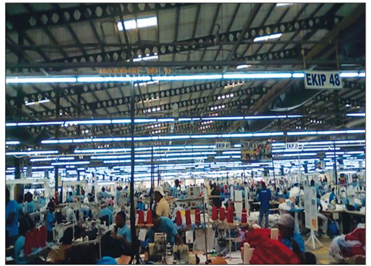 Durante una visita guiada a la CODEVI en abril de 2018, se observaron 3000 personas de origen haitiano en una nave elaborando prendas de vestir en máquinas de coser. Se trataba de obreros, cortadores, cocedores, mecánicos de máquinas, hiladores, supervisores de calidad, lavadores, empacadores, impresores de sellos, etc. Allí confeccionan ropa interior femenina y camisetas etiquetadas para marcas como Dillar’s, Old Navy, Hanes, Calvin Klein, Levi’s, Polo, Dockers, American Eagle, Gap y Apolo entre otras (diario de campo 2018). Estas corporaciones textiles comercializan los productos en Nueva York, Londres y en otras ciudades importantes a nivel mundial (figura 3).