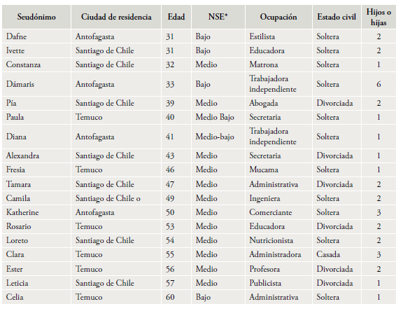Las experiencias de incumplimiento del pago de pensiones de alimentos que se presentan en este artículo fueron recogidas en el marco de un proyecto de investigación sobre autonomía económica de las mujeres en Chile. Durante la investigación se indagó empíricamente en las experiencias a través de las cuales las mujeres producen, gestionan y controlan ingresos propios en ámbitos asociados al trabajo, al emprendimiento, a la propiedad, deudas, ahorros y subsidios, entre otros. Se utilizó un diseño cualitativo (Denzin y Lincoln 2005) basado en entrevistas semiestructuradas realizadas de forma presencial entre los meses de abril y diciembre de 2022; para las entrevistas se usaron grabadoras digitales. Todas las entrevistas fueron transcritas literalmente para mantener la integridad de las expresiones y lenguajes utilizados por las participantes. Se realizó un muestreo intencional estratificado (Flick 2007) a partir de las variables edad, nivel socioeconómico y ciudad de residencia con el fin de seleccionar una muestra de 80 mujeres adultas de entre 30 y 60 años que tuvieran un trabajo remunerado y que vivieran en las ciudades Antofagasta, Santiago de Chile y Temuco. Todas las participantes aceptaron voluntariamente formar parte de la investigación y firmaron consentimientos informados. En este artículo sus nombres han sido anonimizados a través de seudónimos para resguardar su privacidad.