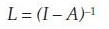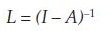 [12]La estructura de la matriz de Leontief regional es similar a la de la matriz de coeficientes regionales. Esta se divide en submatrices, dependiendo del número de regiones del estudio. Para una economía con 1, 2,... R regiones, se verá así: