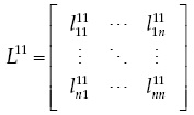 Las submatrices que componen la matriz L son cuadradas de tamaño n y contienen los multiplicadores de producto para cada región. Esto significa que la matriz L11 estará compuesta por los elementos lij11, los cuales representan el impacto en la producción de i en la región 1, cuando la demanda final del bien j en la región 1 sube en una unidad.