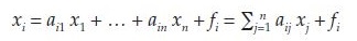 [1]Donde xi representa la producción del sector i, zij representa la demanda intermedia del bien i realizada por el sector j, y fi es la demanda final del bien i. La proporción de la demanda intermedia del bien i hecha por el sector j, sobre el total del bien j producido en la economía, se define como el coeficiente técnico: