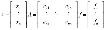 [4]Teniendo en cuenta que existe un número n de sectores productivos, existirá entonces un número igual de ecuaciones que describa la distribución de todos los sectores (la ecuación anterior para cada sector i = 1, 2,…, n). Las n ecuaciones que surgen para los sectores de la economía pueden ser organizadas en un sistema matricial de la siguiente manera: