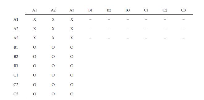 Los indicadores intra- e interregionales utilizados en este trabajo se pueden entender más fácil de manera gráfica en la figura 1, donde se muestra una matriz de Leontief para tres regiones (A, B y C) y tres sectores (1, 2 y 3).