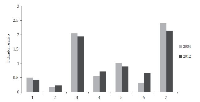 La tabla 1 contiene los indicadores intrarregionales. Los departamentos se ordenaron, para cada año, de acuerdo con las magnitudes de sus indicadores.