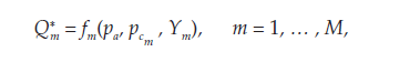 Luego, a partir de la minimización del gasto para el nivel dado Q*m se obtiene la demanda que realiza el país m del bien importado en cuestión desde la