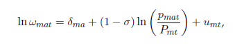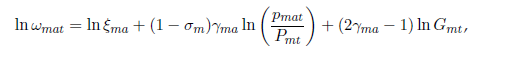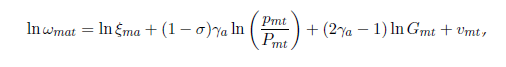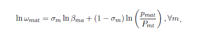 (14)donde ξma = βmaσmγmaαmaγma/θma. Por lo tanto, tomando logaritmo en ambos miembros, se obtiene la siguiente ecuación de log-lineal de demanda
