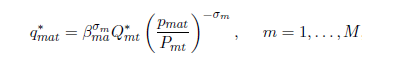 (13)De esta manera, en términos de la participación del gasto que tiene a en m en el momento t, la demanda será