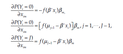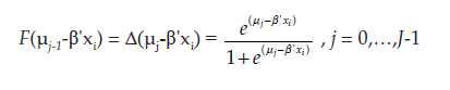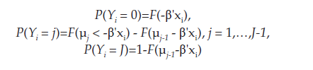 (4)donde la estimación del modelo se lleva a cabo por máxima verosimilitud recurriendo a algoritmos iterativos de optimización y los umbrales se estiman simultáneamente con los parámetros del vector β, común para todas las alternativas.