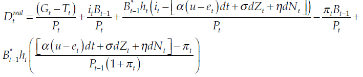Una vez establecido el proceso estocástico que modela la dinámica estocástica de la tasa de depreciación, se incluye este en las ecuaciones (5) y (8) del déficit fiscal, lo que permite establecer ecuaciones estocásticas del déficit fiscal en términos nominales y reales. No obstante, antes de esto, es necesario suponer el principio de paridad de tasas de interés interna y externa: