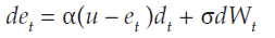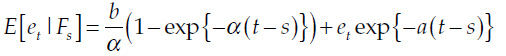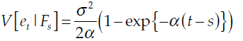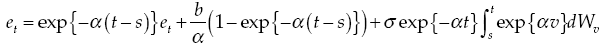 para 0 ≤ s < t. En consecuencia, si et se condicionada a una filtración Ft se tiene una distribución normal con media y varianza dadas, respectivamente, por: