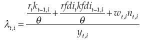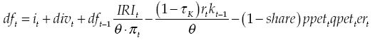 Where R,γ,P,δ are, respectively, capital rent, the constant of adjustment cost, price of capital goods and gross depreciation rate, and IRI is gross active interest rate.