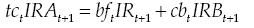 Financial intermediaries receive deposits in current account from households in a fixed proportion (rc) from their money demand dmt, and financial deposits (bft). They, also, lend money to investment companies (dft), keep central bank reserves (rft) and access to credit from the central bank to adjust financial differences (cft). The relevant nominal rates for deposits, loans and credits are, respectively, IRt,IRIt,IRBt.