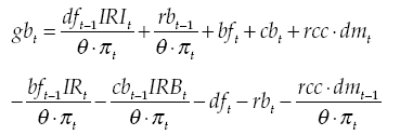 We assume the government has an indebtedness target, which is reached adjusting the tax collection to households. When an exogenous shock occurs, the tax rate is adjusted to achieve the expected level of indebtedness: