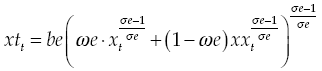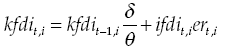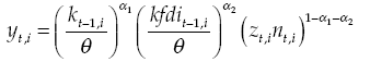 Production incorporates three productive factors: national capital, external capital and labor. The accumulation of national capital was described in equation (E9). The accumulation of external capital results from the direct foreign investment: