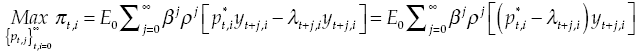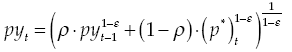 Nevertheless: it is possible that, for institutional reasons, producers cannot adjust prices permanently. Such rigidity is modeled with the scheme proposed by Calvo. Probability of not being able to adjust prices in a certain period is ρ. In this case, a representative firm will solve the following maximization problem: