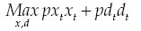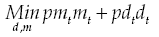 (E14)To replace in objective function, we solve the system formed by restrictions, in terms of df , dm and parameters: