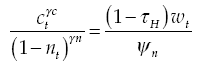 The relationship between consumption and leisure, the demand for real monetary holdings and the Euler condition are derived from the first order conditions:
