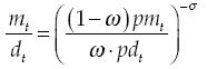 There is a continuum of firms (indexed between 0 and 1) in monopolistic competition, which minimize costs, given the demand derived in monopolistic competition. Substitution elasticity between goods of different firms is Ɛ.
