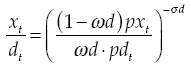 (E21)Where ytpy are, respectively, output and relative price of production (with respect to the system numeraire); and marginal cost (or unit cost, given constant returns to scale) is defined as: