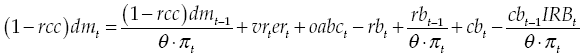 Lending involves risks of default and management costs, which are reflected in the function Xt = X(dft), where X',X'' ≥ 0. Financial intermediaries are subject to an institutional constraint, which forces them to keep reserve deposits in the central bank, in a proportion of deposits received: rbt = bt = rrb∙(rcc∙dmt + bft).