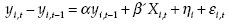 (2) A decir de Beck y Levine (2004), la ecuación 2 elimina el efecto específico del país; sin embargo, introducen un nuevo sesgo: dado que por construcción el nuevo término del error,