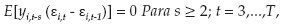 , no está serialmente correlacionado, y (b) las variables explicativas, X, son débilmente exógenas, Arellano y Bond proponen las siguientes condiciones de momento.