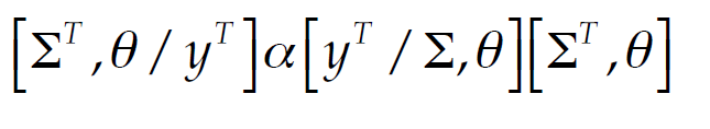 (10)Where the rectangular parenthesis is interpreted as the probability distribution, and the symbol α expresses proportionality. The proposed algorithm by Primiceri (2005) and Nakajima, Kasuya, and Watanabe (2011) generates samples of