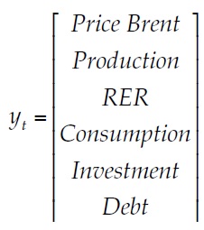 (1)Where yt is the set of endogenous variables properly transformed to explain the relationship of the variables of price and production of oil with the selected macroeconomic ones, considering the transmission channels explained in the previous section.