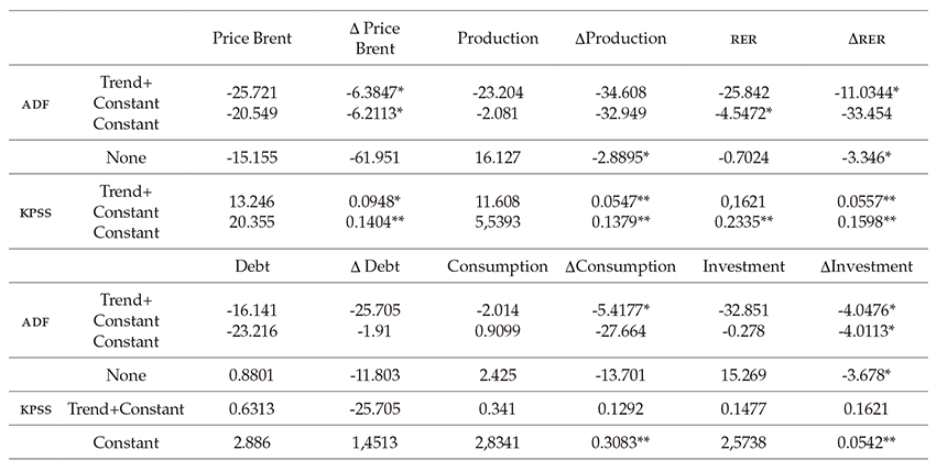 In this section, we describe our empirical strategy, which considers the relationship between prices or oil production with macroeconomic and fiscal variables. It is worth noting that this relationship has been unstable since the end of the 1980s. Therefore, the econometric analysis considers two key elements. The first is associated with changes in the volatility of the shocks of prices and oil production between 1987 and 2015. The second takes into account the various forms of the response of macroeconomic variables to price and production oil shocks, which requires consideration of changes in the transmission mechanisms during the period. Thus, the selected methodology is based on multivariate autoregressive vector parameters and changing volatility over time (tvp-var).