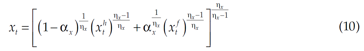 The investment bundle, xt, aggregates domestic and foreign investment according to the next function (10) with its corresponding price index.