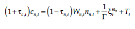 Non-Ricardian households, denoted by n, are indexed between 0 and Γ and solve a similar problem, but they are assumed to have no access to financial markets. Therefore, they consume all their labor income and the transfers received from the government period by period. They seek to maximize their lifetime utility: