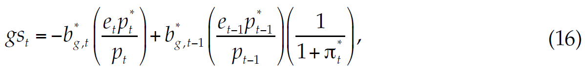 (5)Where (1 + πt + 1)γb ψ is a term that adjust nominal debt to inflation at a rate γ b ∈ [0,1].