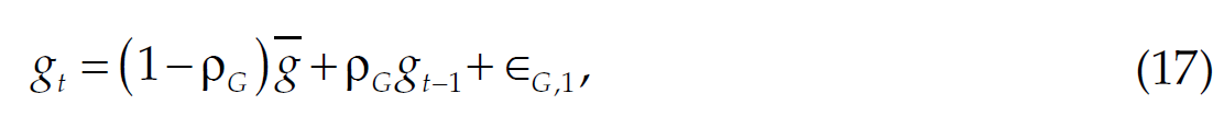 (17)where g- is g the long run government share, and ρG captures the persistence of the process.