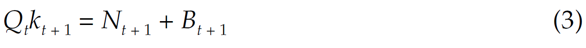 (3)Where Qt corresponds to the price of a unit of capital, which varies depending on the capital producing technology. The comparison between the expected marginal return to holding capital with its expected marginal financial cost determines the entrepreneurs’ demand for capital. The expected gross nominal return to holding a unit of capital from t to t + 1 EtFt+ 1 is defined as: