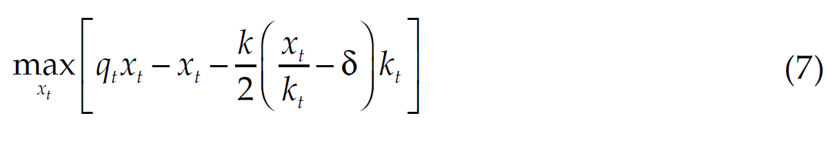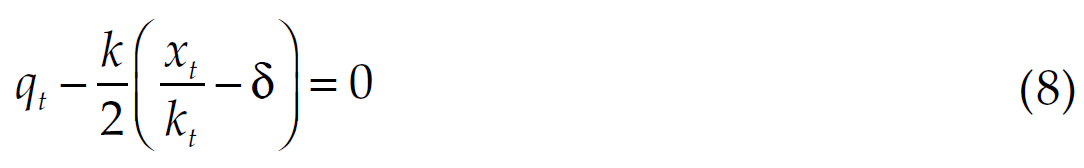 (8)With 𝜅 being the capital adjustment cost parameter and q = Qt/Pt .
